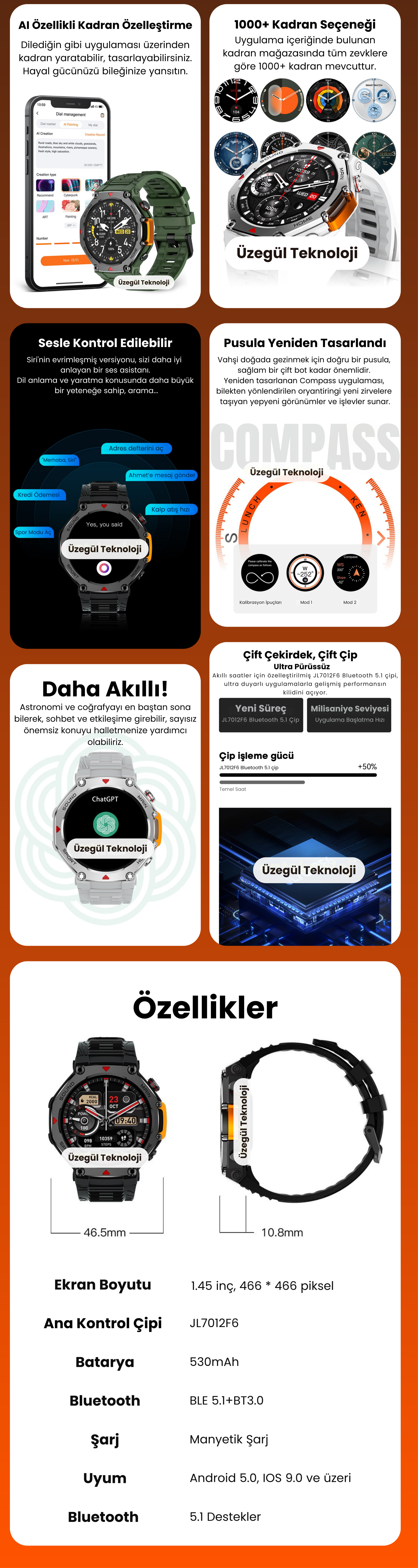 Bu akıllı saati birkaç haftadır kullanıyorum ve gerçekten bayıldım. Tasarımı çok şık, ekranı parlak ve pil ömrü beklediğimden çok daha uzun. Hem kaliteli duruyor hem de telefonumla mükemmel uyum sağlıyor. Kesinlikle tavsiye ederim!