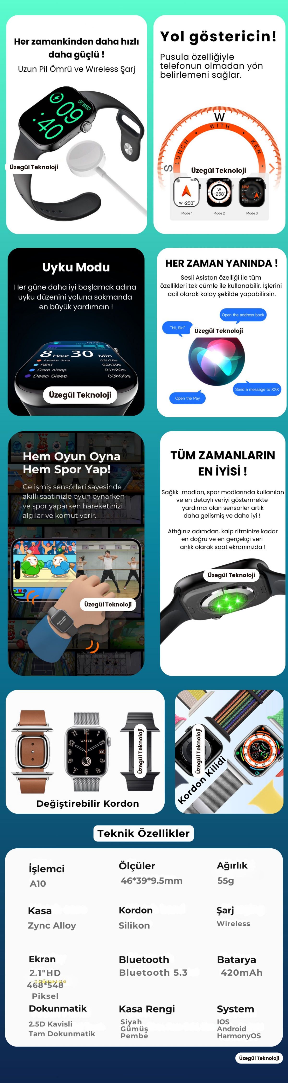 Bu akıllı saati birkaç haftadır kullanıyorum ve gerçekten bayıldım. Tasarımı çok şık, ekranı parlak ve pil ömrü beklediğimden çok daha uzun. Hem kaliteli duruyor hem de telefonumla mükemmel uyum sağlıyor. Kesinlikle tavsiye ederim!